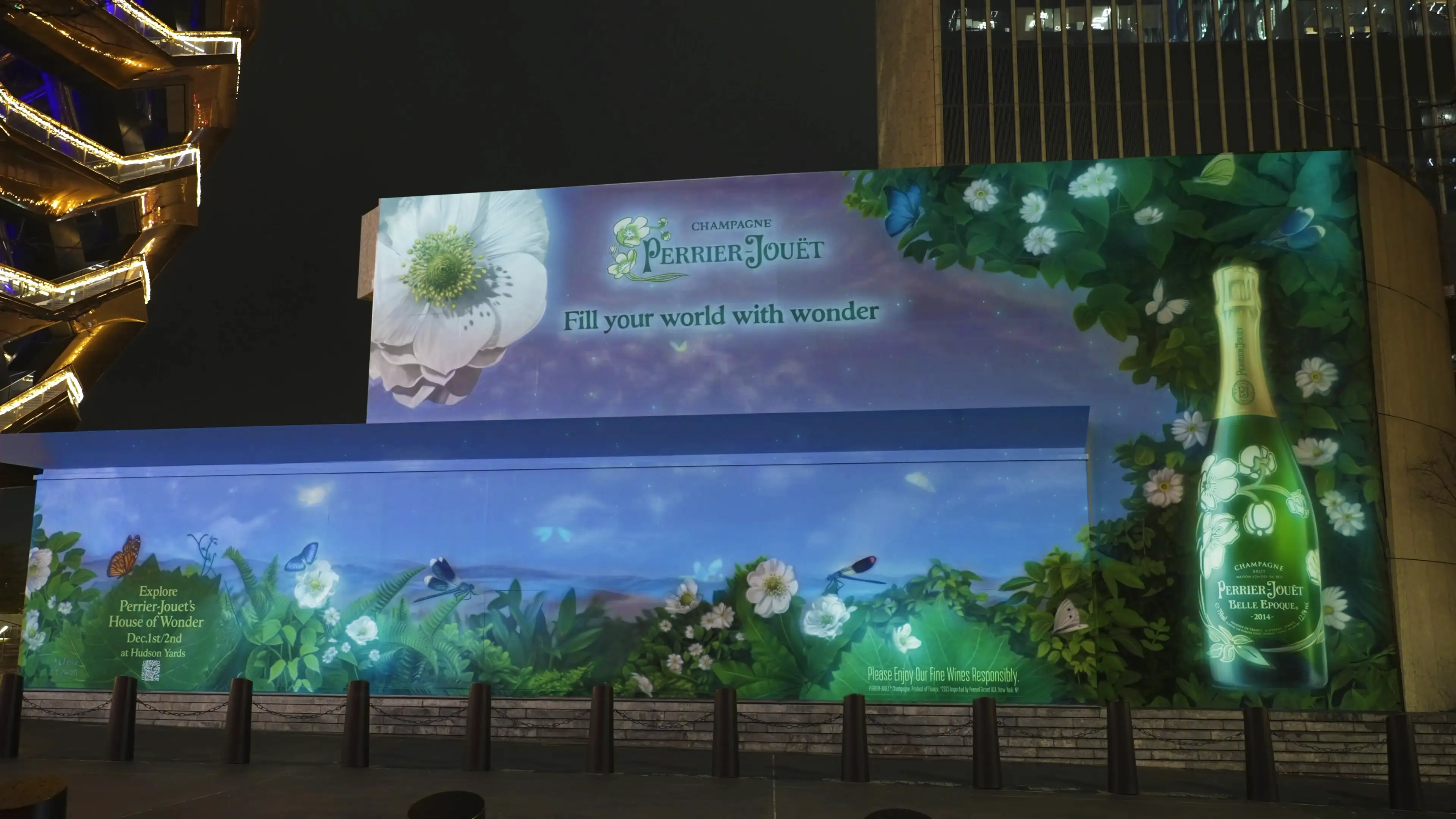 We scouted and secured a high-visibility retail storefront in New York City and transformed it using custom paint, depth-sensing cameras, and projection mapping. During the day, a prominent floral motif anchored the design. At night, the mural evolved into an animated garden, where butterflies and critters reacted to the movement of passersby. This dynamic transformation created a sense of magic and discovery, drawing people toward the pop-up and reinforcing the brand’s message in both subtle and spectacular ways